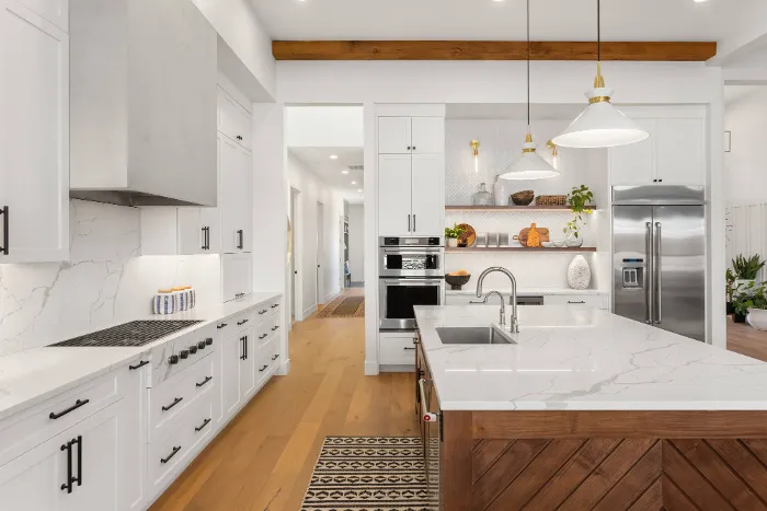 Choose appliances with built-in design options to blend them seamlessly into your kitchen layout. These appliances are designed to fit flush with cabinets and countertops, giving your kitchen a sleek and streamlined look.